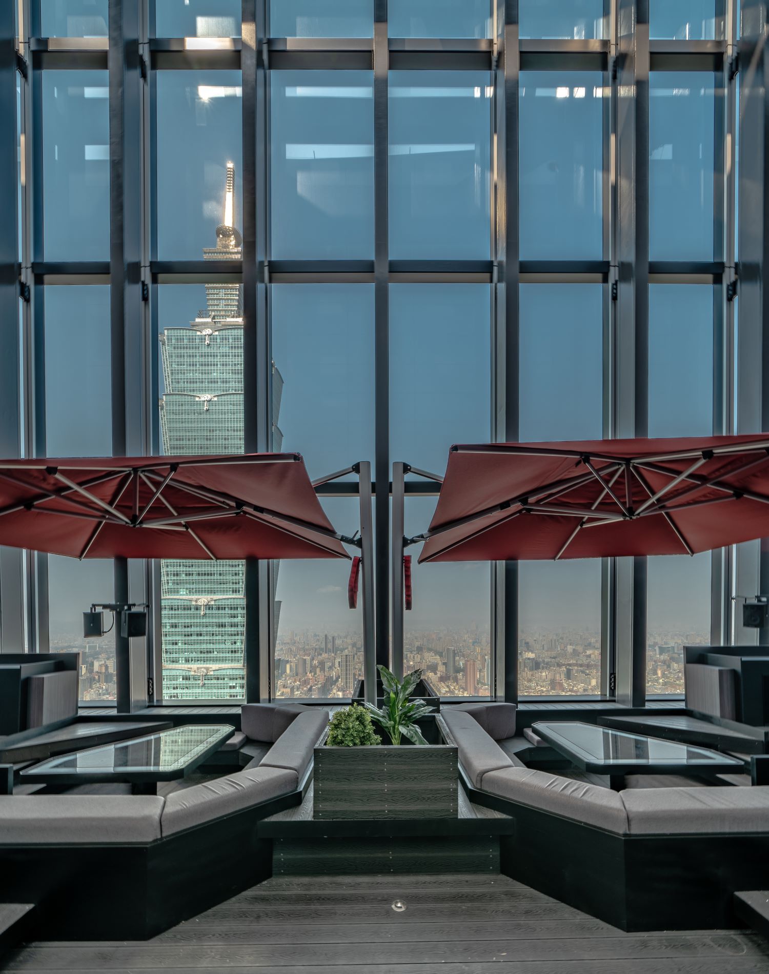 يقع أعلى لاونج، سكاي بار ومطعم على سطح مبنى في تايوان في الطابق الثامن والأربعين، واعداً ضيوفه بإطلالات بانورامية شاملة بزاوية 360 درجة على المدينة، مع برج تايبيه 101 من جهة وحديقة يانغمينغشان الوطنية من جهة أخرى.